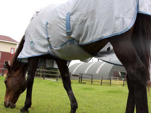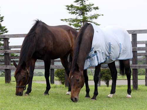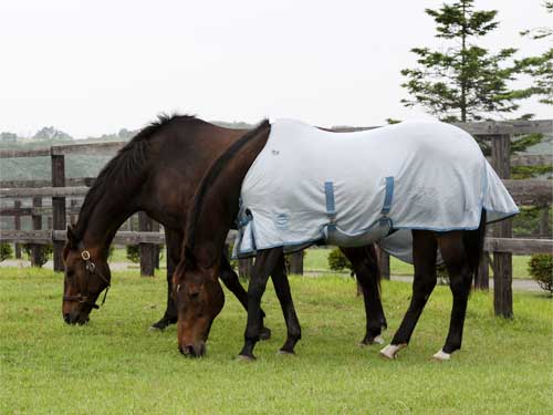 これはアブ避けの馬服であり、直射日光で体温が上がるのを防いでくれる上