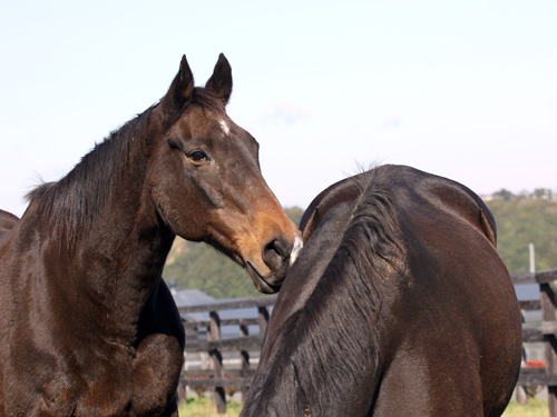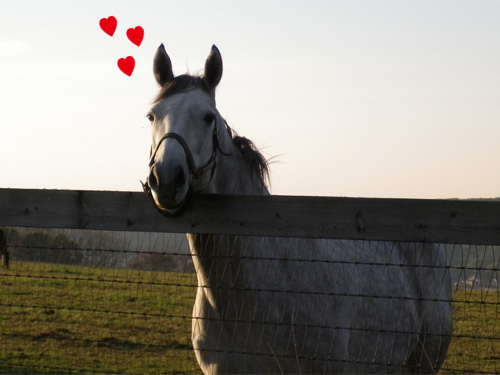 お相手は、最近お隣の牧場にやって来た芦毛ちゃん