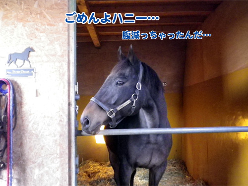 (彼女は24時間放牧)空腹に負けてすぐ馬房には戻るけど、彼女に呼ばれて鳴き合うふたり…