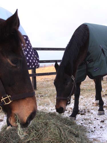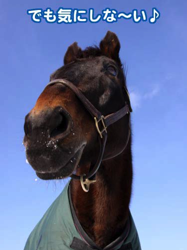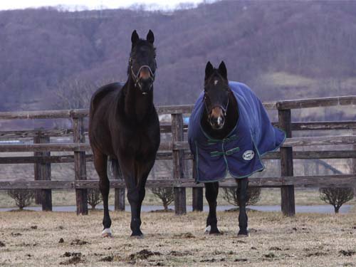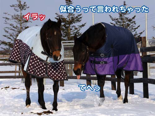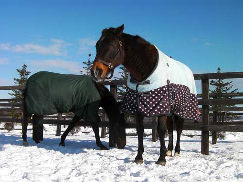 すっかり12月、朝晩はマイナス気温になるので、二人とも馬服着用。