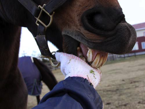 アクトレスに気を取られていたら、私の手はチャンプの口の中へ