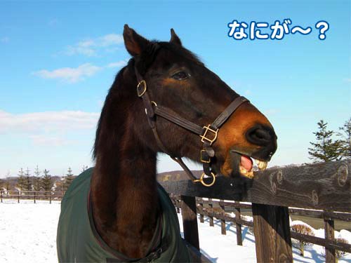 年賀状用の写真でも撮ろうと、一眼レフを持って放牧地に潜入