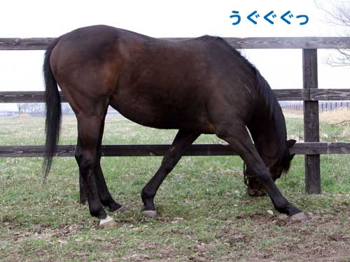 ここ2、3日雨が降るほど暖かくて、地面が緩んだ放牧地。
