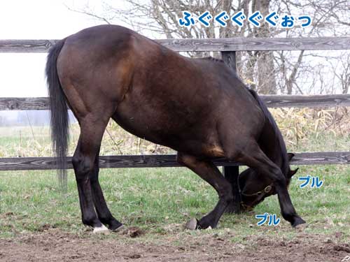 おまけに、雪解けでドロドロになった放牧地を転げ回るから