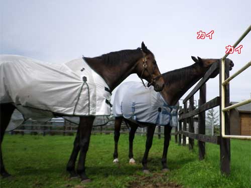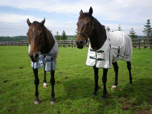 やっと届いた馬服を着て颯爽と放牧へ出て行ったふたり