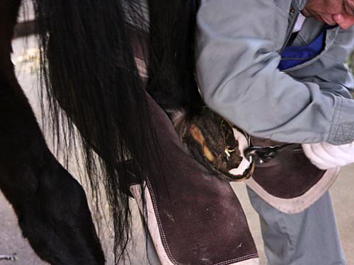 ゆらゆらしすぎて蹄の形が変に削れてしまっているので修正してもらっています