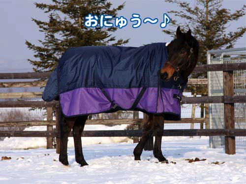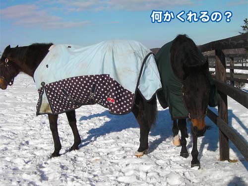 すっかり12月、朝晩はマイナス気温になるので、二人とも馬服着用。
