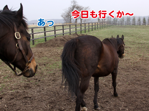 ここ2、3日雨が降るほど暖かくて、地面が緩んだ放牧地。
