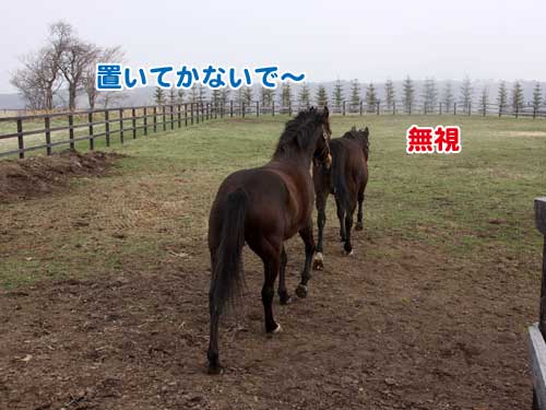 年賀状用の写真でも撮ろうと、一眼レフを持って放牧地に潜入
